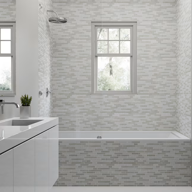 Be the first to review “Elida Ceramica Tailormade White 11-in x 12-in Matte Recycled glass Linear Mosaic Floor and Wall Tile (0.852-sq ft Piece)”